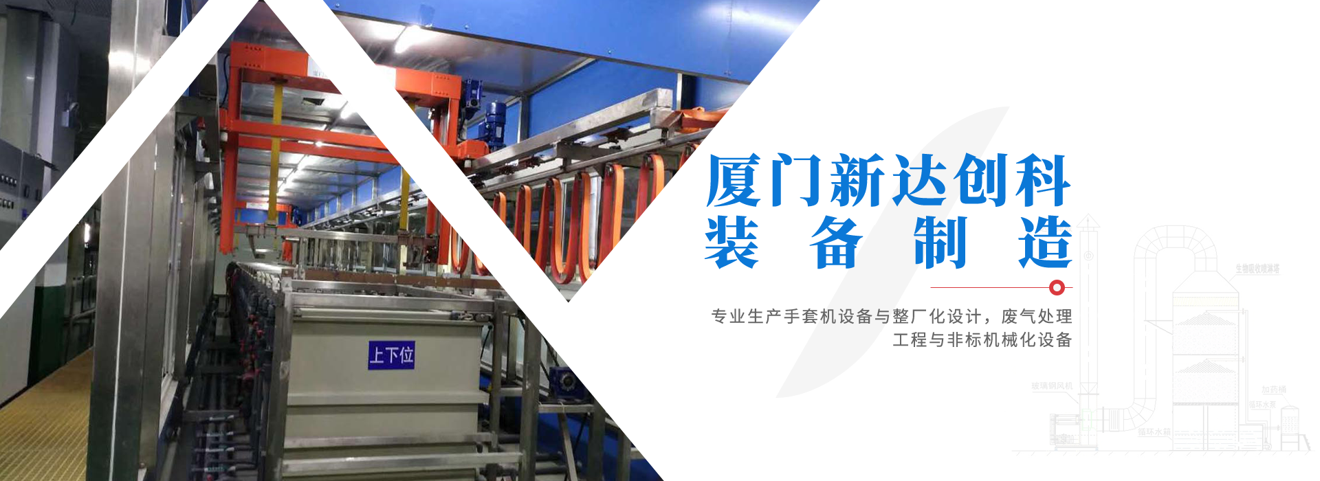 廈門新達(dá)創(chuàng)科裝備制造有限公司,成立于2016年6月份,是一家生產(chǎn)手套機(jī)設(shè)備與整廠化設(shè)計,廢氣處理工程與非標(biāo)機(jī)械化設(shè)備的制造廠商,位于廈門市集美區(qū),至今已累積多年的技術(shù)與經(jīng)驗,一路秉持【品質(zhì)、效率、服務(wù)】的精神理念,為客戶設(shè)計完善的生產(chǎn)設(shè)備,并不斷的研究開發(fā)、改善、創(chuàng)新,加強(qiáng)技術(shù)提升,制造達(dá)到符合要求的自動化電鍍設(shè)備與環(huán)保設(shè)備。
